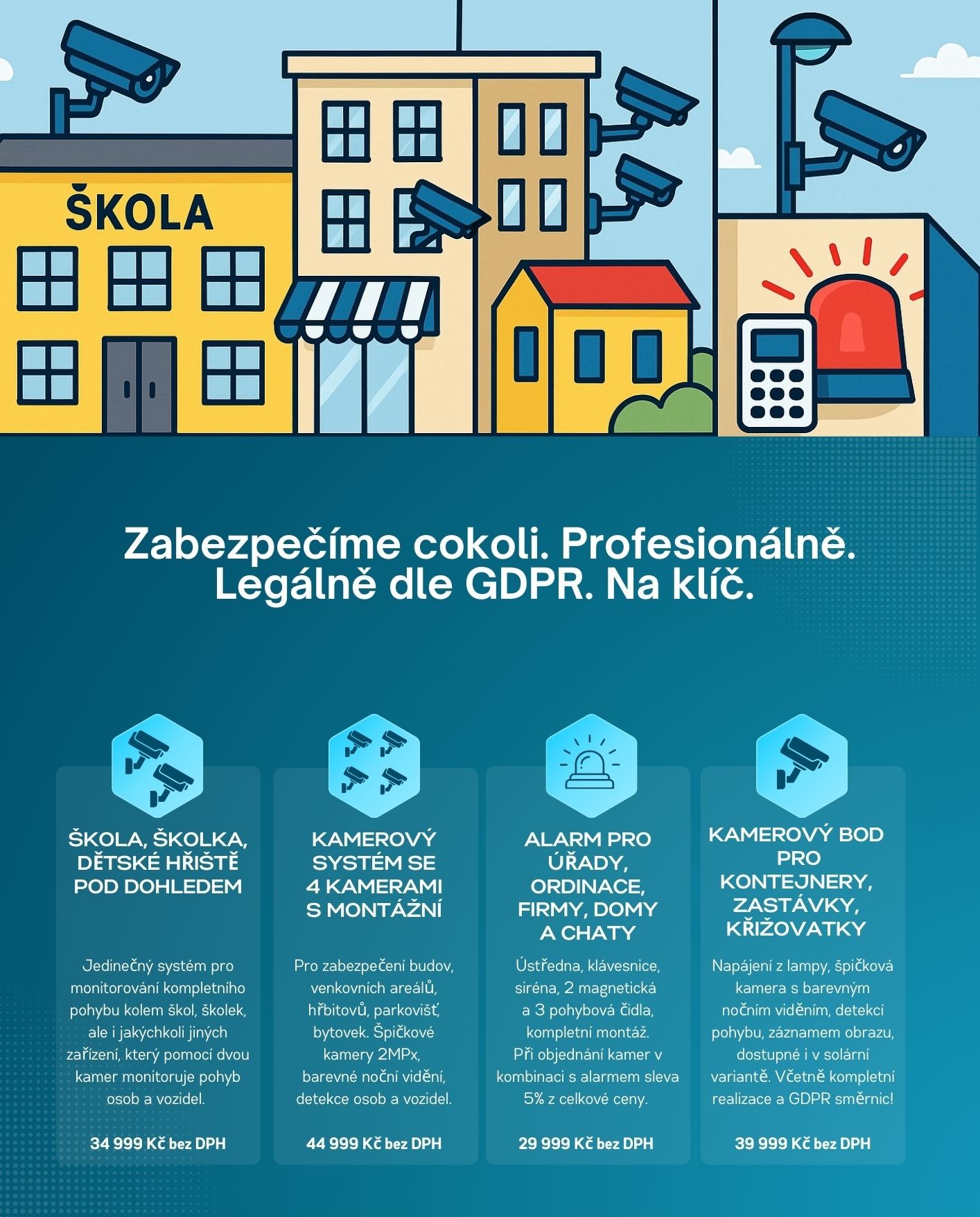 SPECIALIZUJEME SE ZEJMÉNA NA PROBLEMATIKU KAMEROVÝCH SYSTÉMŮ VE ŠKOLÁCH A TAKÉ V RÁMCI MĚST A OBCÍ PŘI MONITOROVÁNÍ VEŘEJNÝCH PROSTRANSTVÍ I BEZ MĚSTSKÉ POLICIE.