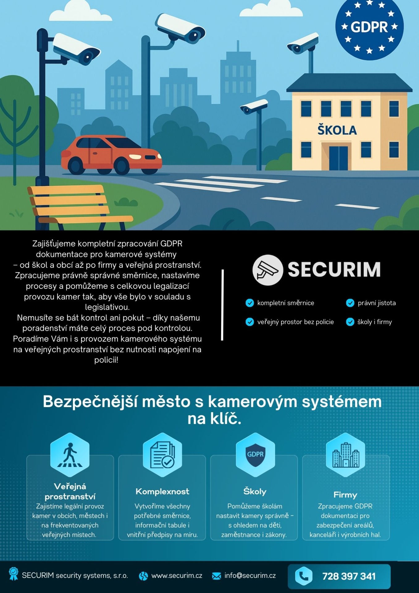 SPECIALIZUJEME SE ZEJMÉNA NA PROBLEMATIKU KAMEROVÝCH SYSTÉMŮ VE ŠKOLÁCH A TAKÉ V RÁMCI MĚST A OBCÍ PŘI MONITOROVÁNÍ VEŘEJNÝCH PROSTRANSTVÍ I BEZ MĚSTSKÉ POLICIE.
